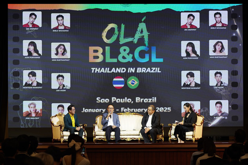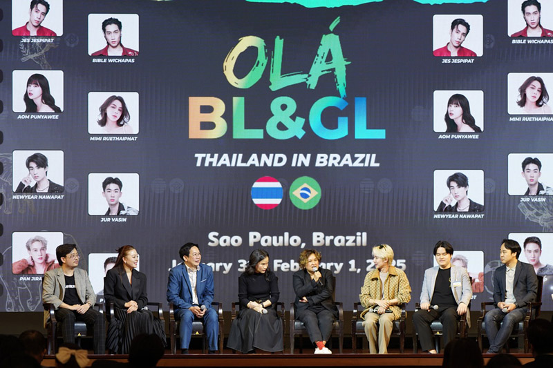 คุณรัศม์ ชาลีจันทร์ ผู้ช่วยรัฐมนตรีประจำกระทรวงการต่างประเทศ กล่าวถึงการส่งเสริมอุตสาหกรรมซอฟต์พาวเวอร์ไทยให้ “รุกไปในระดับโลก” โดยเน้นการ “สร้างความนิยมไทย” ในกลุ่มชาวต่างประเทศและ “ชี้เป้า” ตลาดใหม่ที่มีศักยภาพแก่ผู้ประกอบการ ก่อนที่คุณปาณิดล ปัจฉิมสวัสดิ์ รองอธิบดีกรมสารนิเทศ กระทรวงการต่างประเทศ, อดีตเอกอัครราชทูตธฤต จรุงวัฒน์ เลขาธิการมูลนิธิไทย และคุณณพสิทธิ เที่ยงธรรม อุปนายกและเลขาธิการสมาคมส่งเสริมคอนเทนต์วายไทย ได้ร่วมเสวนาเกี่ยวกับปรากฏการณ์ของกระแสความนิยมในซีรีส์วายไทยทั่วโลก รวมถึงความตั้งใจในการส่งเสริมนักแสดงและอุตสาหกรรมบันเทิงไทยในต่างประเทศ OLÁ BL&GL THAILAND IN BRAZIL เป็นอีกหนึ่งกิจกรรมที่ขับเคลื่อนวงการซีรีส์วายไทยในระดับนานาชาติอย่างแท้จริง
