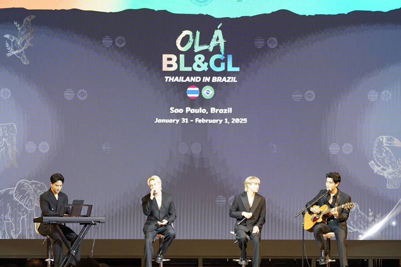 คุณรัศม์ ชาลีจันทร์ ผู้ช่วยรัฐมนตรีประจำกระทรวงการต่างประเทศ กล่าวถึงการส่งเสริมอุตสาหกรรมซอฟต์พาวเวอร์ไทยให้ “รุกไปในระดับโลก” โดยเน้นการ “สร้างความนิยมไทย” ในกลุ่มชาวต่างประเทศและ “ชี้เป้า” ตลาดใหม่ที่มีศักยภาพแก่ผู้ประกอบการ ก่อนที่คุณปาณิดล ปัจฉิมสวัสดิ์ รองอธิบดีกรมสารนิเทศ กระทรวงการต่างประเทศ, อดีตเอกอัครราชทูตธฤต จรุงวัฒน์ เลขาธิการมูลนิธิไทย และคุณณพสิทธิ เที่ยงธรรม อุปนายกและเลขาธิการสมาคมส่งเสริมคอนเทนต์วายไทย ได้ร่วมเสวนาเกี่ยวกับปรากฏการณ์ของกระแสความนิยมในซีรีส์วายไทยทั่วโลก รวมถึงความตั้งใจในการส่งเสริมนักแสดงและอุตสาหกรรมบันเทิงไทยในต่างประเทศ OLÁ BL&GL THAILAND IN BRAZIL เป็นอีกหนึ่งกิจกรรมที่ขับเคลื่อนวงการซีรีส์วายไทยในระดับนานาชาติอย่างแท้จริง