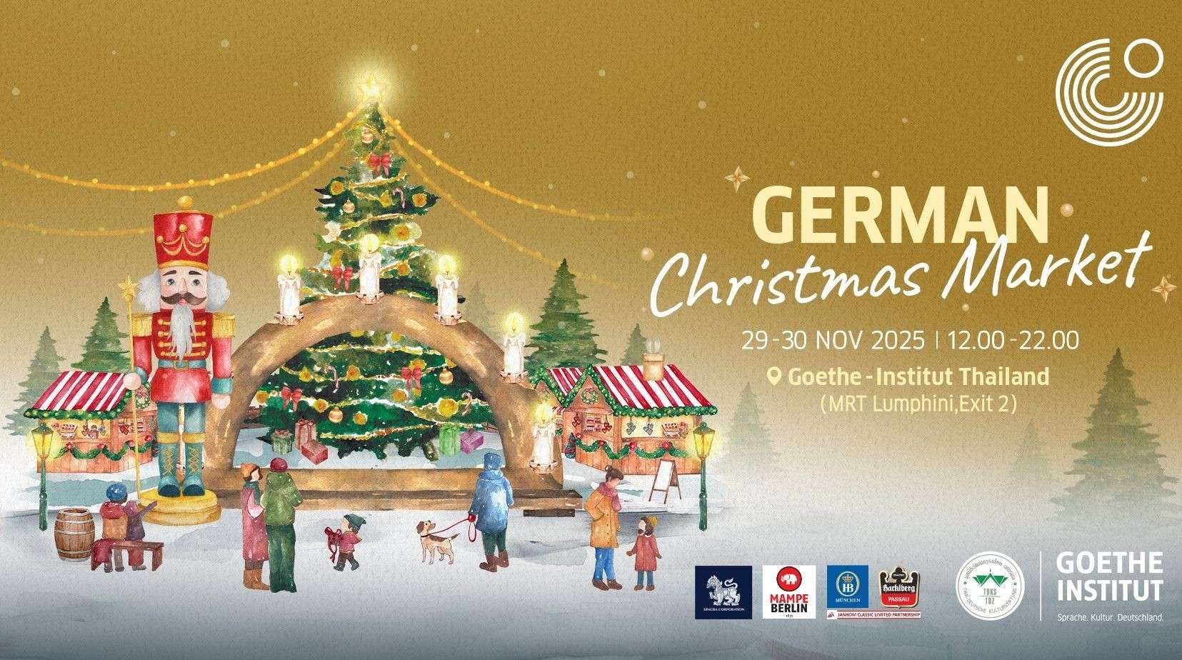 ตลาดคริสต์มาสสไตล์เยอรมัน ประจำปี 2568 ผสมผสานกลิ่นอายจากหลากหลายวัฒนธรรม ใช้เวลาสุดพิเศษกับคนที่คุณรักในบรรยากาศแสนรื่นเริงของเทศกาลคริสต์มาสอันแสนอบอุ่นกว่า 50 บูธ ณ สถาบันเกอเธ่ ประเทศไทย สาธรซอย 1 ที่ได้ร่วมกับมูลนิธิวัฒนธรรมไทย-เยอรมัน (Thai-German Cultural Foundation) ระหว่างวันที่ 29 – 30 พฤศจิกายนนี้