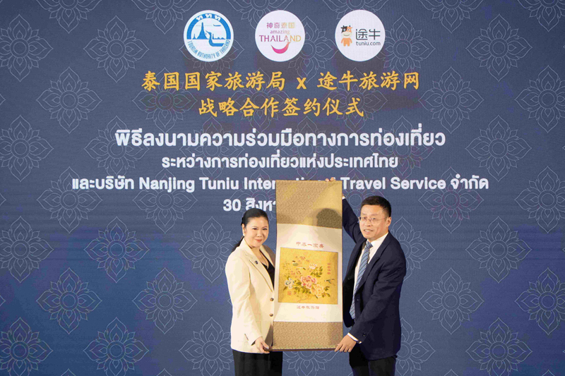 การท่องเที่ยวแห่งประเทศไทย และ บริษัท NANJING TUNIU INTERNATIONAL TRAVEL SERVICE หรือ TUNIU ผู้ให้บริการแพลตฟอร์มท่องเที่ยวอย่างครบวงจรและได้รับความนิยมอย่างมากในตลาดจีน ร่วมกันยกระดับประสบการณ์ท่องเที่ยวไทยของนักท่องเที่ยวจีนระดับคุณภาพกับภาพลักษณ์เชิงบวกด้านความปลอดภัย