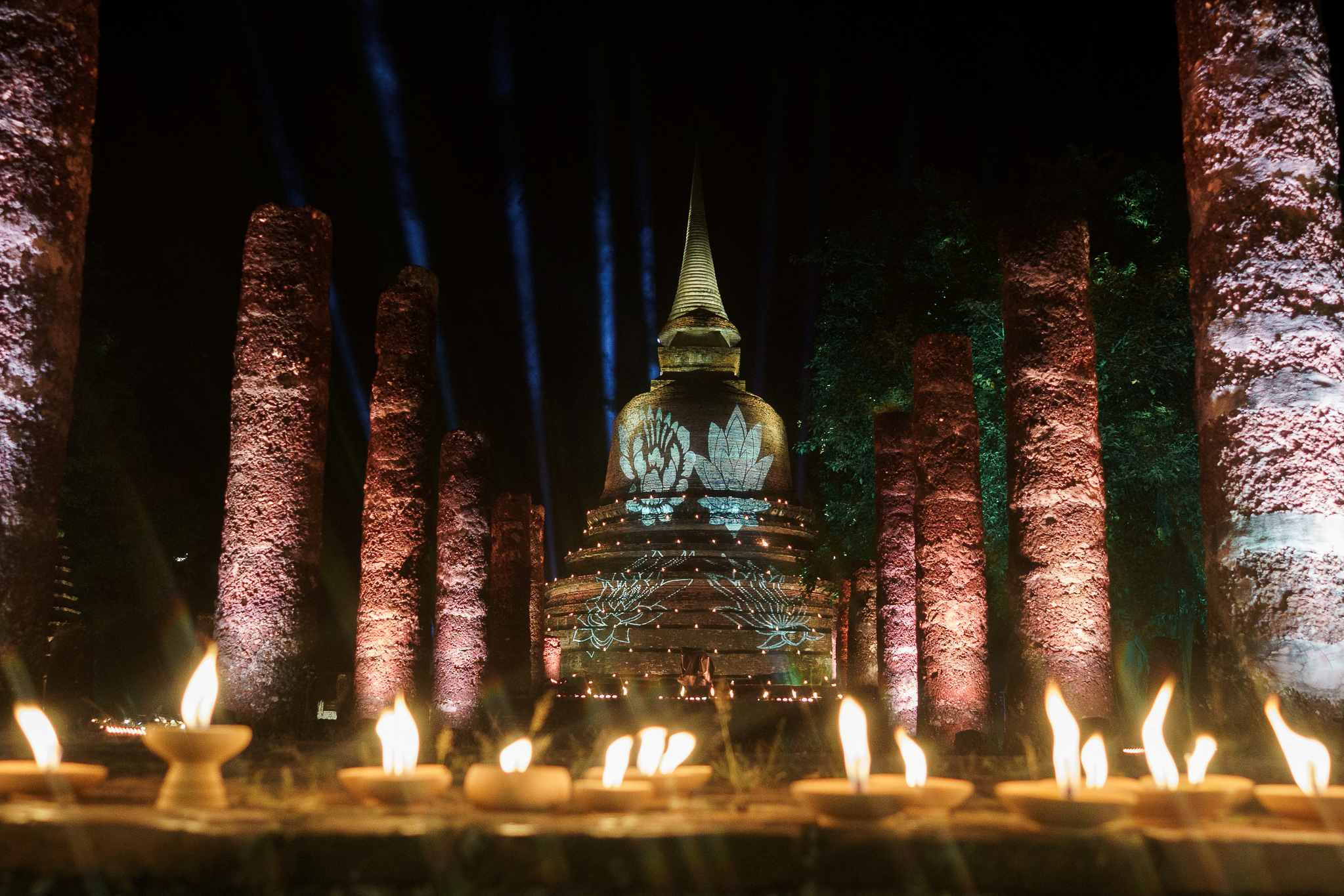 Maha Loy Krathong @ Sukhothai กำหนดจัดงาน 27 ตุลาคม-5 พฤศจิกายน 2568 ณ วัดชนะสงคราม อุทยานประวัติศาสตร์สุโขทัย จังหวัดสุโขทัย ประกอบด้วย การตกแต่งเสริมสร้างบรรยากาศประดับไฟอย่างสวยงามตระการตาเข้ากับบรรยากาศย้อนยุคผสมผสานวัฒนธรรมวิถีชีวิต และความรุ่งเรืองของวัฒนธรรม กิจกรรมสาธิตงานหัตถกรรม ศิลปะงาน Craft และกิจกรรม DIY ผลงานที่เป็นเอกลักษณ์ของชุมชนในจังหวัดสุโขทัย เช่น เครื่องปั้นดินเผาปัดเงิน ปัดทอง บ้านทุ่งหลวง การทำตะคัน วิถีชุมชนสำหรับใช้ในประเพณีลอยกระทง การทำข้อมือจากเหล็กน้ำพี้ การเพ้นท์โคม เพ้นท์พัด ลายเฉพาะของชาวสุโขทัย เป็นต้น ตลาดจำหน่ายสินค้าและอาหารพื้นเมือง เมนูหาทานยาก ของดีประจำถิ่น และลิ้มรสอาหารไทย หลากหลายเมนูที่คัดสรรมาอย่างพิถีพิถันภายในงาน อาทิ ข้าวเปิ๊บ บ้านนาต้นจั่น ขนมข้าวปุกงา การแสดงทางวัฒนธรรมไทย ชุดการแสดงที่ร่วมแสดงความอาลัย ถ่ายทอดความงดงามทางนาฏศิลป์ กิจกรรมส่งเสริมการท่องเที่ยวแต่งกายชุดไทยร่วมกิจกรรมลอยกระทง เพื่อร่วมสืบสานประเพณีอันดีงาม ถ่ายภาพงดงามในบรรยากาศงานย้อนยุค โดยจัดให้มีพิธีถวายความอาลัย พร้อมปรับการแสดงหลักเป็นการบรรเลงดนตรีเพลงพระราชนิพนธ์ การบรรเลงดนตรีไทยและการแสดงศิลปวัฒนธรรมไทยที่สื่อถึงการเทิดพระเกียรติและความจงรักภักดี พร้อมควบคุมโทนสีของพื้นที่จัดงานให้เหมาะสม นอกจากนี้ ตลอดระยะการจัดงาน ทุกวันในเวลา 21.21 น. จะจัดให้มีพิธีจุดตะคัน เพื่อร่วมแสดงความไว้อาลัยและสำนึกในพระมหากรุณาธิคุณโดยพร้อมเพรียงกัน