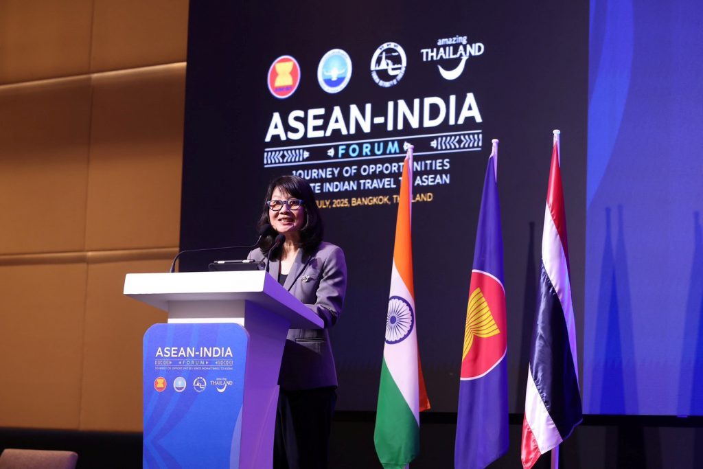 นางสาวภัทรอนงค์ ณ เชียงใหม่ รองผู้ว่าการด้านตลาดเอเชียและแปซิฟิกใต้ การท่องเที่ยวแห่งประเทศไทย กล่าวว่า ภายใต้กรอบความร่วมมืออินเดียและอาเซียนมีความร่วมมือในการส่งเสริมการเดินทางท่องเที่ยวระหว่างกันอย่างต่อเนื่อง โดยประเทศไทย สิงคโปร์ มาเลเซีย และอินโดนีเซีย ล้วนเป็นจุดหมายปลายทางยอดนิยมของนักท่องเที่ยวตลาดอินเดีย สำหรับประเทศไทย ในปี 2567 มีจำนวนนักท่องเที่ยวอินเดียเดินทางเข้าประเทศไทยสะสมกว่า 2.1 ล้านคน ซึ่งถือเป็นจำนวนสูงสุดเป็นประวัติการณ์ จนถึงปี 2568 ตั้งแต่วันที่ 1 มกราคม – 20 กรกฎาคม 2568 มีนักท่องเที่ยวอินเดียเดินทางเข้าไทยแล้วกว่า 1,308,705 คน สะท้อนให้เห็นถึงศักยภาพที่แข็งแกร่งของตลาดอินเดียในฐานะ 1 ใน 5 ตลาดหลักของไทยอย่างต่อเนื่อง ในโอกาสพิเศษปีแห่งการท่องเที่ยว ASEAN-India Year of Tourism ประเทศไทยได้รับเกียรติให้เป็นประเทศผู้ประสานงานหลัก ( Lead Country) ด้านการส่งเสริมตลาดการท่องเที่ยวอาเซียน-อินเดีย ททท. จึงจัดงาน “ASEAN-India Forum” ขึ้น ในวันที่ 23 กรกฎาคม 2568 ณ โรงแรม Royal Orchid Sheraton Riverside ภายใต้แนวคิด “Journey of Opportunities: Ignite Indian Travel to ASEAN” มุ่งหวังให้เป็นเวทีของการสร้างความสัมพันธ์อันดีระหว่างหน่วยงานภาครัฐ และเอกชนด้านการท่องเที่ยวของอาเซียนและอินเดีย ในการแลกเปลี่ยนเรียนรู้ และสร้างโอกาสทางธุรกิจในการส่งเสริมการท่องเที่ยวระหว่างอาเซียน-อินเดีย ทั้งยังเป็นอีกก้าวสำคัญของความร่วมมือระหว่างอาเซียนและอินเดีย เพื่อผลักดันให้ภูมิภาคอาเซียนเป็น “จุดหมายปลายทางสำหรับทุกความฝันของนักเดินทาง” (Destination for Every Dream) อย่างแท้จริง