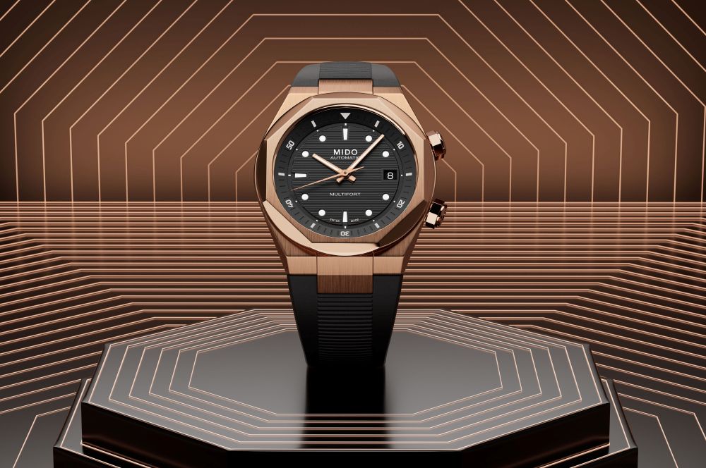 มิโด (MIDO) ส่งท้ายปีด้วยคอลเลกชั่น “มัลติฟอร์ท 8 ทู คราวน์” (Multifort 8 Two Crowns) สีใหม่ที่สะท้อนพลังความแม่นยำทางเทคนิคได้อย่างสมบูรณ์แบบ พร้อมดีไซน์ทรงเรขาคณิตอันเป็นเอกลักษณ์ โดดเด่นด้วยตัวเรือนสเตนเลสสตีลเคลือบ PVD สีโรสโกลด์ที่ให้ความรู้สึกเรียบหรู จับคู่กับหน้าปัดสีดำด้านและสายยางที่เสริมความสปอร์ตแข็งแกร่งได้อย่างลงตัว