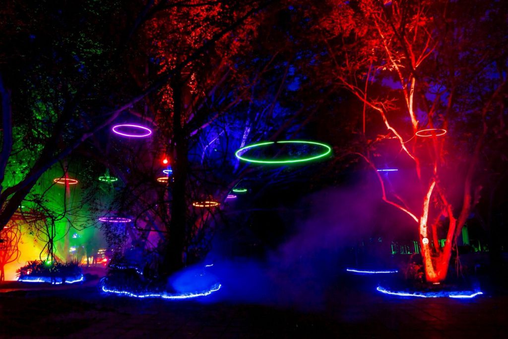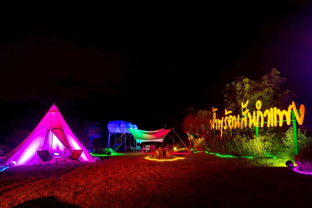 การแสดงเทคนิค แสง เสียง ผสานสื่อผสมและเทคโนโลยีสมัยใหม่ผ่าน 10 จุดแสดงแสง ในลักษณะ Walking Tour ได้แก่ “ประตูกาลเวลา” ซุ้มประตูโค้งยาวต่อเนื่องเป็นอุโมงค์ จัดวางเป็นจังหวะชีวิตของธรรมชาติ, “ม่านแสงดาว” ม่านเส้นแสงไฟ Tiny Light bulbs, “แสงธารา” LASER Swamp บนพื้นถนน, “เสียงตามแสง” แสงที่สอดประสานกับเสียงของธรรมชาติ และดนตรี, “พราวน้ำพุร้อน” ฉายแสงสีลงบนไอน้ำจากน้ำพุร้อน ทำให้เกิดม่านหมอกแห่งสีสัน, “ออนเซ็นแสง” ฉาบแสงสีบนผิวลำธาร สร้างมิติใหม่ของการแช่เท้าในน้ำพุร้อน, “ป่ารุ่งเรือง” จัดวางแสงย้อนต้นไม้ ให้เกิดมิติของสี แสงและเงา, “ลานแคมป์ไฟ” กองไฟจำลอง (Faux Fire) และคบไฟ ที่ถูกจัดวางองค์ประกอบ ประหนึ่งงานศิลปะ, “บิ๊กไข่” ต้นกำเนิดของชีวิตและจินตนาการ และ “นิทานแสง” การย้อมแสงสีชมพู และประดับประดาไฟกลุ่มต้นไม้หลากหลายรูปแบบ รวมทั้งยังมีกิจกรรมอื่นๆ อาทิ การท่องเที่ยวเพื่อสุขภาพ (Health & Wellness) การแสดงทางวัฒนธรรมร่วมสมัย (Contemporary Dance) ประกอบน้ำพุดนตรี การบรรเลงเพลง พระราชนิพนธ์ประกอบน้ำพุ การออกร้านสินค้าชุมชน อาหารท้องถิ่น ฟู้ดทรัค งานวัดย้อนยุค เป็นต้น นอกจากนี้ ภายในงานได้จัดเตรียมจุดลงนามถวายพระพรเฉลิมพระเกียรติพระบาทสมเด็จพระเจ้าอยู่หัว เพื่อให้นักท่องเที่ยว และประชาชนที่มาร่วมชมงาน ได้ร่วมลงนามถวายพระพรด้วย