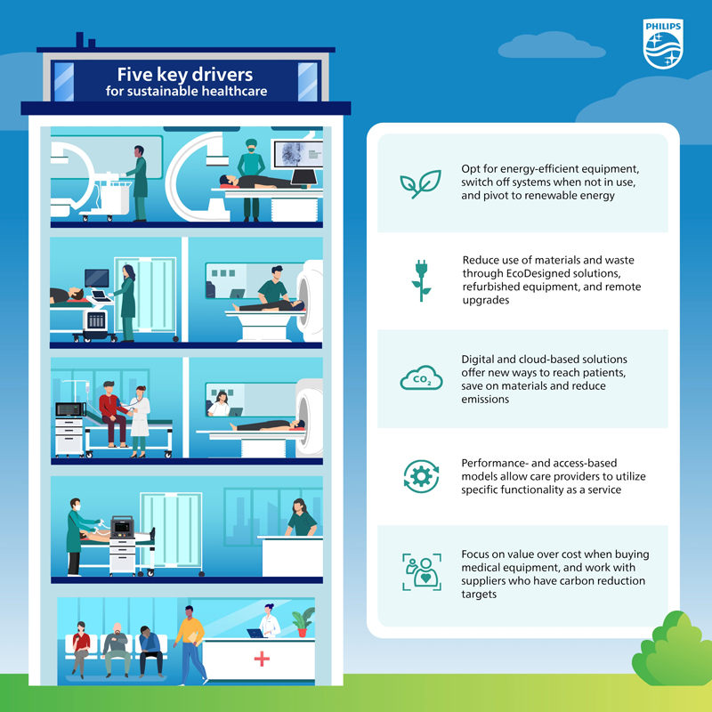 ฟิลิปส์ ร่วมกับผู้ให้บริการสาธารณสุขและพันธมิตรในภูมิภาคเอเชียแปซิฟิก ขับเคลื่อนให้เกิดความยั่งยืนผ่านโซลูชันส์แบบหมุนเวียน (circular solutions), นวัตกรรม (innovations) และการให้ความรู้ ติดตามได้ทาง Philips’ ESG goals and environmental efforts