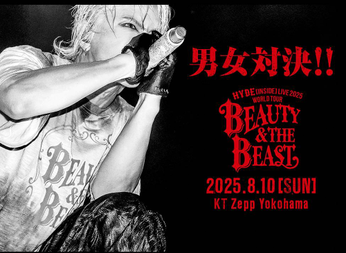 HYDE [INSIDE] LIVE 2025 WORLD TOUR BEAUTY & THE BEAST Live Viewing เตรียมไปมันส์กับ HYDE คอนเสิร์ตใหญ่ที่สุดในชีวิตที่ KT Zepp Yokohama ประเทศญี่ปุ่น โดยการแสดงจะเป็นรอบพิเศษ “BEAUTY & THE BEAST” ที่จะถูกแบ่งเป็นโซนยืนฝั่งหญิง (BEAUTY) และฝั่งชาย (BEAST) สร้างประสบการณ์ที่แปลกใหม่ไม่เหมือนใคร ซึ่งจะถูกถ่ายทอดสดพร้อมกันทั่วโลกทั้งโรงภาพยนตร์ทั่วประเทศญี่ปุ่น และประเทศไทย ที่ โรงภาพยนตร์พารากอน ซีนีเพล็กซ์ ในวันที่ 10 สิงหาคม 2568 บัตรราคาเริ่มต้น 750 บาท