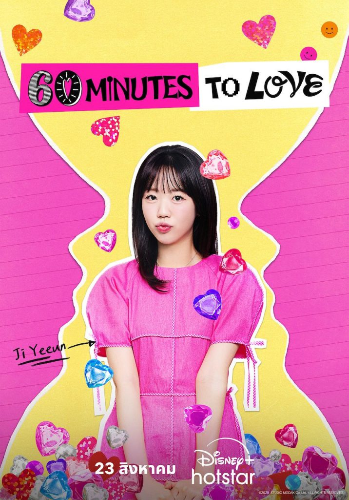 60 Minutes to Love สตรีมได้ทุกวันเสาร์ เริ่มวันที่ 23 สิงหาคมนี้ ร่วมลุ้นไปกับภารกิจตามหาหัวใจของจีเยอึน (จากเรื่อง Running Man) ที่ออกเดตแบบสปีดเดตในเวลาแค่ 60 นาที กับชายหนุ่มหลากสไตล์ หลายบุคลิก เพื่อค้นหาความรักที่แท้จริง ผ่านซีซันที่มีความยาวทั้งหมด 20 ตอน