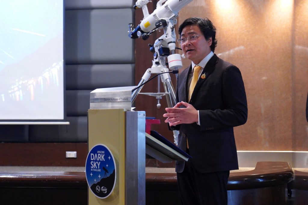ผศ. ดร.วิภู รุโจปการ รองผู้อำนวยการ สถาบันวิจัยดาราศาสตร์แห่งชาติ สดร. กล่าวว่า โครงการ AMAZING DARK SKY IN THAILAND Season 4 รณรงค์ให้สังคมตระหนักถึงผลกระทบจากมลภาวะทางแสง อนุรักษ์ความมืดของท้องฟ้า และให้ความสำคัญในการประหยัดพลังงานและปรับพฤติกรรมการใช้แสงไฟ โดยใช้ดาราศาสตร์มากระตุ้นการท่องเที่ยวเชิงสร้างสรรค์ ซึ่งในช่วง 3 ปีที่ผ่านมา ได้มีการประกาศรายชื่อพื้นที่ที่ได้รับการขึ้นทะเบียนเป็นเขตอนุรักษ์ท้องฟ้ามืดของประเทศไทยแล้วทั้งสิ้น 48 พื้นที่ครอบคลุมทุกภูมิภาคของประเทศไทย และในปี 2568 ได้มีการขึ้นทะเบียนอีก 16 พื้นที่เพิ่มเติม เพื่อเป็นแหล่งท่องเที่ยวดูดาวแห่งใหม่ของประเทศไทย นับเป็นก้าวสำคัญที่ช่วยเปิดมิติใหม่ให้กับการท่องเที่ยวไทย ด้วยเสน่ห์ของท้องฟ้ายามค่ำคืนและความงดงามของดวงดาว พร้อมจุดประกายให้นักท่องเที่ยวหันมาสนใจการท่องเที่ยวเชิงดาราศาสตร์มากขึ้น”