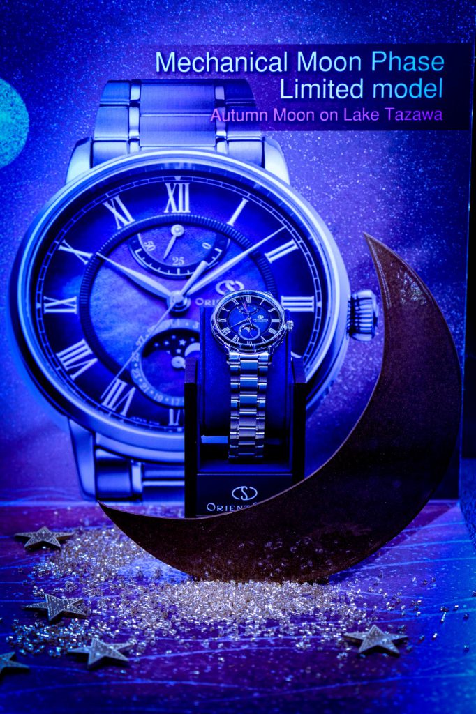 Orient Star Mechanical Moon Phase Limited Edition ภายใต้แนวคิดและสร้างสรรค์จาก “พระจันทร์ในฤดูใบไม้ร่วงที่ทะเลสาบทาซาวะ” ในจังหวัดอาคิตะ ซึ่งได้รับการขึ้นทะเบียนเป็น 1 ใน 100 ทะเลสาบที่สวยงามและลึกที่สุดในญี่ปุ่นโดยมีระดับความลึกถึง 423 เมตร ตัวเรือนมีความโดดเด่นและน่าหลงใหลด้วยดีไซน์การไล่เฉดสีเทาบนหน้าปัดเปลือกหอยมุกที่สีของหน้าปัดนั้นจะเปลี่ยนไปตามมุมมองและแสงที่ตกกระทบเฉกเช่นเดียวกันกับสีของพื้นผิวของทะเลสาบทาซาวะที่จะเปลี่ยนไปตามภูมิอากาศ นาฬิกามีความพิเศษที่ตรงฟังก์ชั่นแสดงข้างขึ้นข้างแรมด้วยดวงจันทร์สีเงินที่ลอยอยู่บนท้องฟ้ายามค่ำคืน ตัวเรือนมีความกว้าง 41.0 มิลลิเมตรและมีความหนา 13.8 มิลลิเมตร กระจกคริสตัลแซฟไฟร์ทรงโค้งเคลือบสารกันสะท้อน SAR ช่วยให้อ่านค่าเวลาได้อย่างชัดเจน