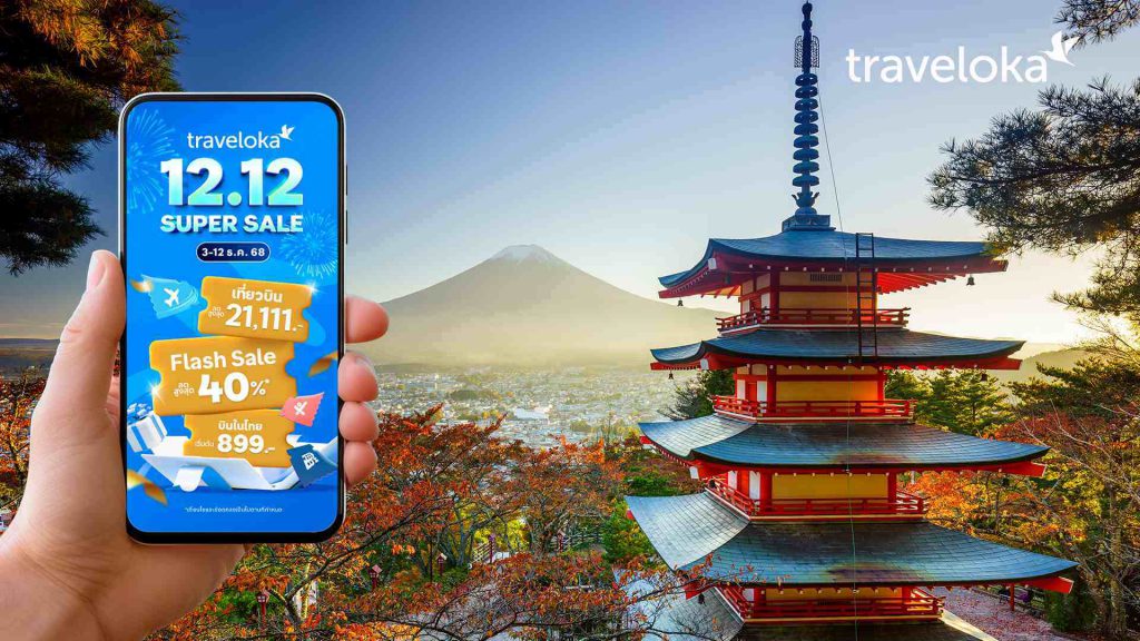 Traveloka เปิดแคมเปญ 12.12 Super Sale ตั้งแต่วันที่ 3–12 ธันวาคม 2568 พร้อมส่วนลด Flash Coupon สูงสุดถึง 50% และดีลพิเศษมากมาย อาทิ ส่วนลดตั๋วเครื่องบินสูงสุด 21,111 บาท, ตั๋วเครื่องบินภายในประเทศเริ่มต้นเพียง 899 บาท, ดีลเที่ยวบิน ที่พัก และ Xperience เริ่มต้นเพียง 12 บาท, โปร ซื้อ 1 แถม 1 สำหรับเที่ยวบินและ Xperience เมื่อจองสำหรับสองท่าน และ ตั๋วเครื่องบินไปหลวงพระบางฟรีจากบางกอกแอร์เวย์ส ผ่านการร่วมสนุกกับกิจกรรมบนแฟนเพจ Facebook, Instagram, และ Line OA ของทราเวลโลก้า