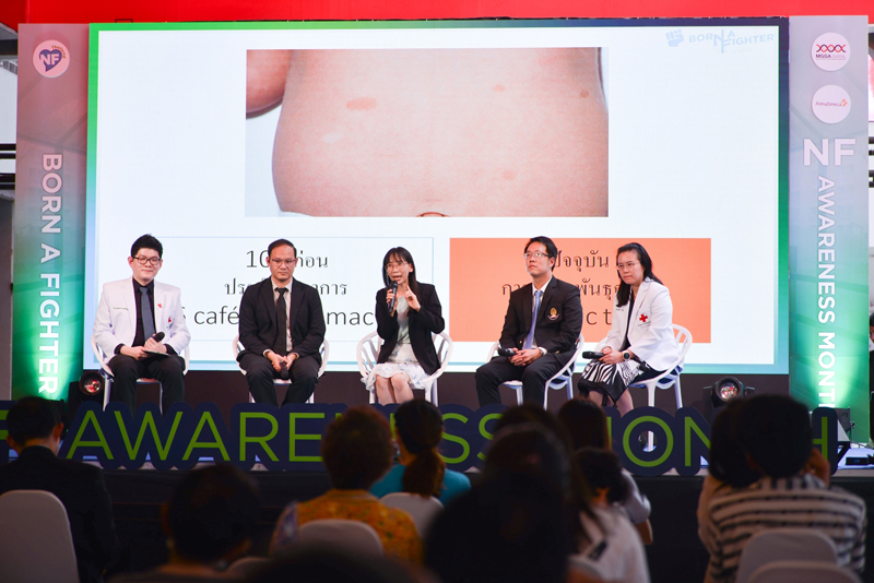 นายบุญ พุฒิพงศ์ธนโชติ ตัวแทนจากมูลนิธิเพื่อผู้ป่วยโรคหายาก กล่าวเสริมว่า “ด้วยบทบาทของมูลนิธิเพื่อผู้ป่วยโรคหายาก เราเป็นตัวกลางหลักในการช่วยเหลือผู้ป่วยอย่างครอบคลุม ทั้งในแง่ของค่ารักษาพยาบาลที่นำมาจากเงินบริจาค รวมถึงการพัฒนาทักษะในการประกอบอาชีพ เพื่อให้ผู้ป่วยมีรายได้ในการดูแลตนเองและครอบครัว นอกจากนี้ มูลนิธิยังสนับสนุนการทำงานของภาครัฐเพื่อช่วยเผยแพร่องค์ความรู้ที่ถูกต้อง และสร้างระบบการดูแลผู้ป่วยโรคหายากอย่างยั่งยืน จากการเก็บสถิติในปัจจุบันพบว่าคนไทยเป็นโรคหายากรวมอยู่ถึง 3.5 ล้านคน ซึ่งจำนวนของโรคหายากมีมากกว่า 7,000 โรคโดยแต่ละโรคมีอาการและการรักษาที่แตกต่างกันออกไป บางโรคอาจพบผู้ป่วยเพียง 1-2 รายในประเทศ ส่งผลให้การสร้างกลุ่มผู้ป่วยของแต่ละโรคเป็นไปได้ยาก ดังนั้นมูลนิธิเพื่อผู้ป่วยโรคหายากจึงเข้ามาดูแลในส่วนนี้ ซึ่งการจัดงานในวันนี้มูลนิธิมีความมุ่งหวังที่จะช่วยสร้างแรงผลักดันในสังคมให้เกิดการยอมรับและเข้าใจผู้ป่วยโรคเอ็นเอฟวันมากขึ้น รวมถึงช่วยสร้างกำลังใจให้พวกเขาได้เดินหน้าต่อไปและสามารถใช้ชีวิตในสังคมได้อย่างเท่าเทียม ดั่งเช่นแนวคิดของงานในวันนี้คือ BORN A FIGHTER”