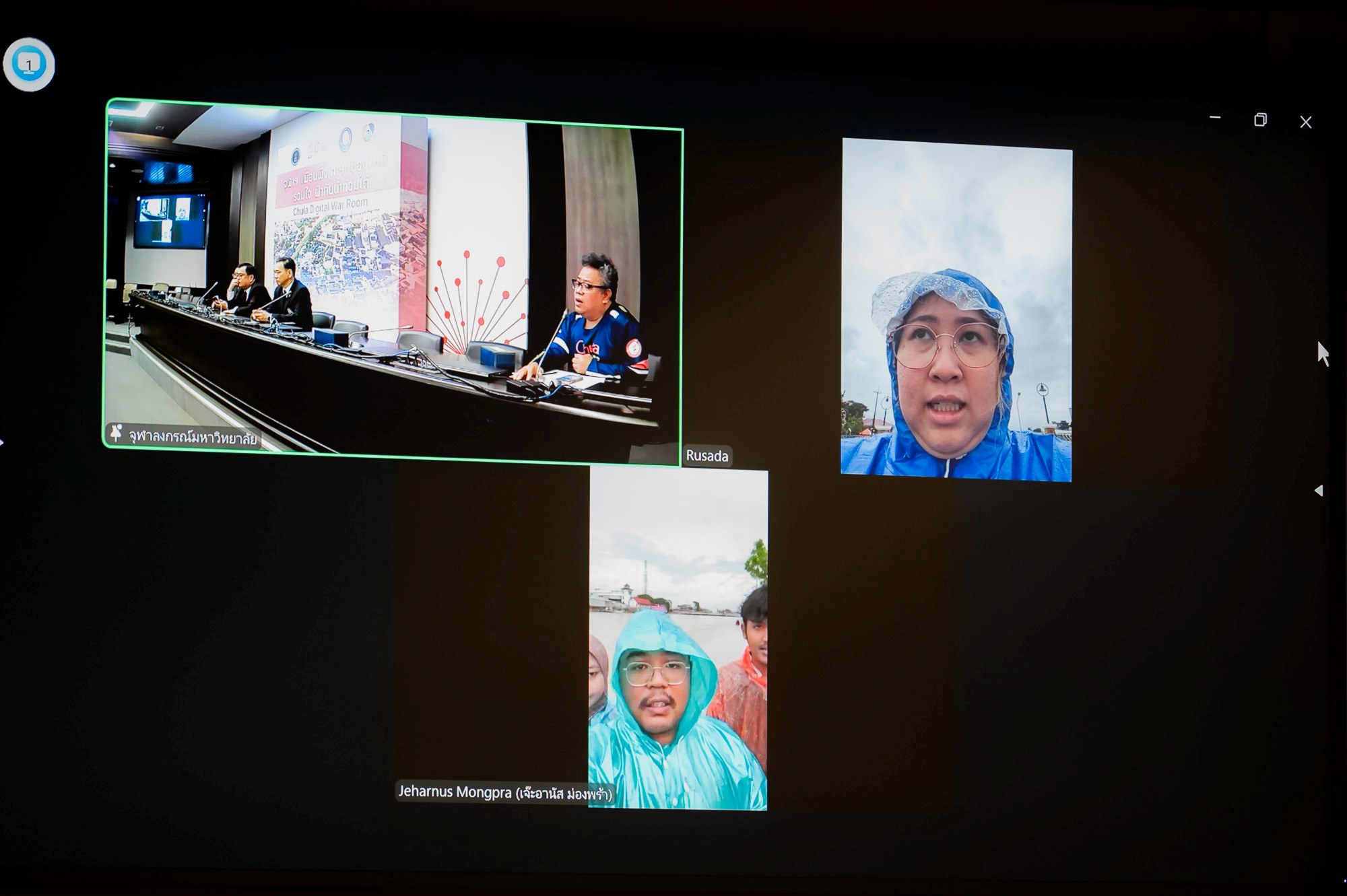 ศ.ดร.วิเลิศ ภูริวัชร อธิการบดีจุฬาฯ รศ.ดร.ศิริเดช สุชีวะ รองอธิการบดีจุฬาฯ และคุณพัฒนพงค์ หนูพันธ์ กรรมการผู้จัดการช่อง 7HD ร่วมงาน สาธิตการใช้งาน อันจะเป็นประโยชน์เพื่อประสานงานช่วยเหลือผู้ประสบอุทกภัยในภาคใต้ในด้านต่าง ๆ แก่ผู้ที่อยู่ในพื้นที่ที่ประสบภัยน้ำท่วม พร้อมให้คำปรึกษาในการดูแลฟื้นฟูสุขภาพกาย สุขภาพใจ สุขภาพสัตว์เลี้ยง ฟื้นฟูที่อยู่อาศัยและการออกแบบเมือง ผ่าน https://engagement.chula.ac.th/warRoom/