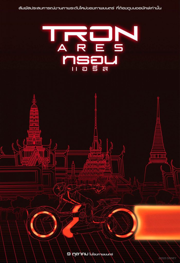 “Tron: Ares ทรอน แอรีส” บุกมาเยือนถึงกรุงเทพฯ ควบไลต์ไซเคิลไปปักหมุดแลนด์มาร์กใจกลางเมือง เปลี่ยนสนามหลวง เสาชิงช้า และมิวเซียมสยาม ให้เป็นกริดแห่งโลกดิจิทัลด้วยแสงสีแดงสุดตระการตา ผ่านโปสเตอร์พิเศษโดย Smashhh Studio
